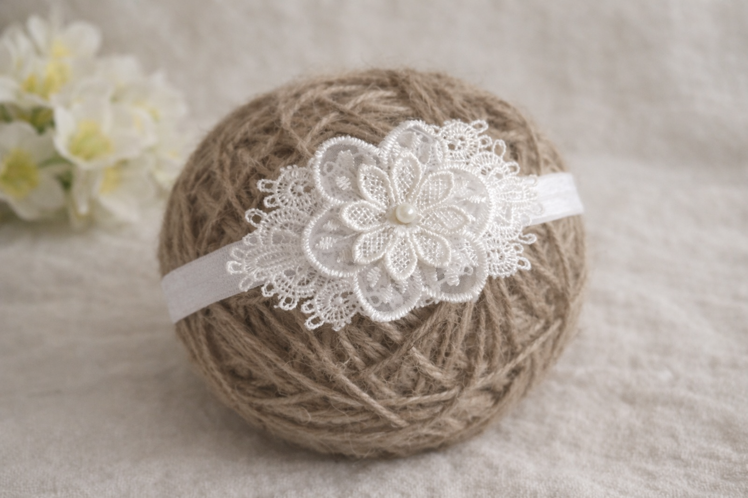 Baby Christening Headband Lace Flower with Pearl