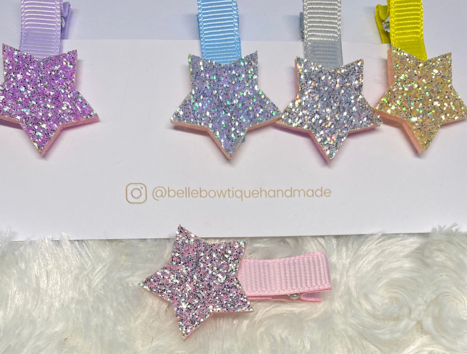 Rainbow Star Ribbon Fringe Clips Pack of 5- Small Clips - Mini Clips - Clip Pack - Baby Hair Clips - Toddler Hair Clips - Lined hair clip