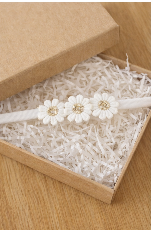 White Gold Daisy Baby Headband